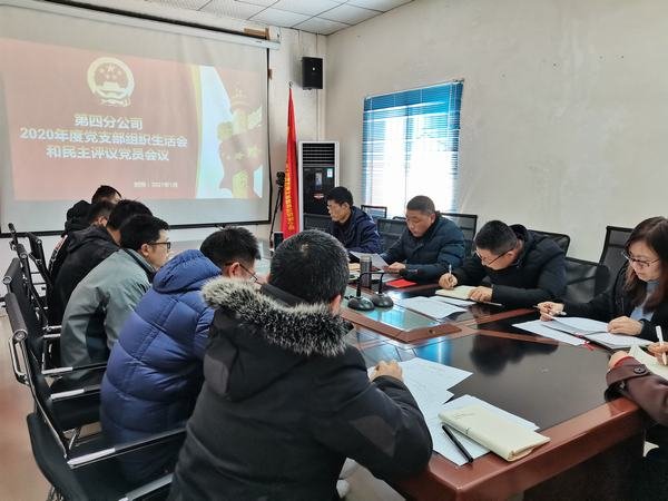 2021年 1月22日下午,第四分公司黨支部在樂至毗河項目部會議室組織召開2020年黨支部組織生活會及黨員民主評議,支部副書記孫紹陽主持會議,在崗黨員及入黨積極分子參加會議。
