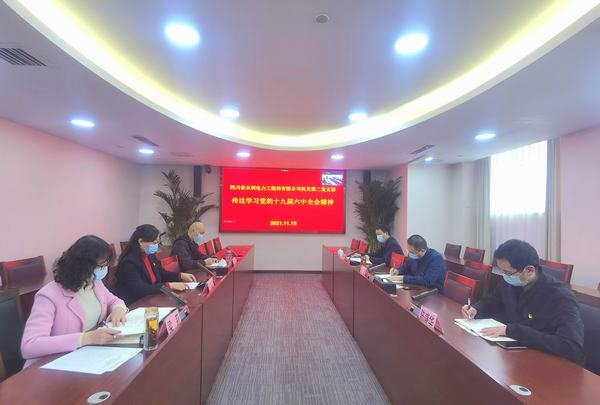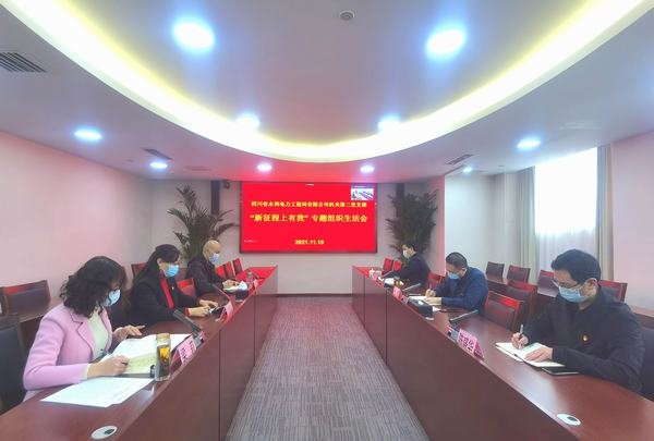 2021年11月19日,為推進黨史學習教育走實走深,根據水利廳、水發集團以及公司黨委有關要求,公司機關第二黨支部在成都總部會議室和資陽辦公區309會議室組織召開“新征程上有我”專題組織生活視頻會議。公司黨委書記、董事長代勇,黨委專職副書記唐驚濤,黨委委員、紀委書記陳盛華,黨委委員、工會主席、黨委工作部部長夏永紅以普通黨員身份參加會議。工會副主席、機關第二黨支部書記付麟麗主持會議。