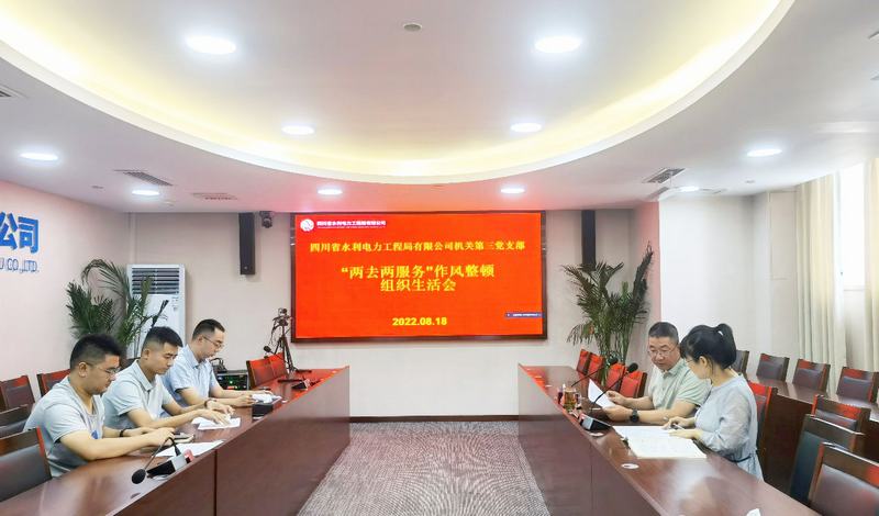 2022年8月18日,機關第三黨支部組織支部黨員及支部涵蓋部門(市場開發部、技術中心、川江檢測技術有限公司)全體職工在公司總部會議室和資陽辦公區301會議室以視頻形式召開“兩去兩服務”作風整頓專題組織生活會。機關第三黨支部書記丁毅主持會議。