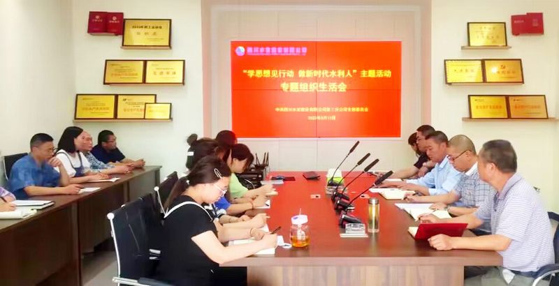 自學習貫徹習近平新時代中國特色社會主義思想主題教育開展以來,三分公司堅持將主題教育作為當前重大政治任務,細化舉措,明確任務,結合三分公司實際,在學思想、見行動、強黨性的基礎上,扎實推動主題教育走深走實。2023年5月15日,三分公司黨支部在都江堰水利大廈八樓會議室召開“學思想 見行動 做新時代水利人”專題組織生活會,會議由三分公司黨支部書記毛偉主持,三分公司黨支部全體黨員參加會議。