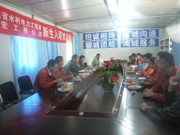 2016年7月26日下午3:00,鑫宏工程公司在固滴項目部會議室開展了新生入職座談會。出席會議的人員有:公司副經理曹軍、項目生產經理丁忠紅、鉆根生產副經理陳勇、安全副經理袁友軍,以及各部門負責人,往屆和應屆大學生等,會議由曹軍主持。