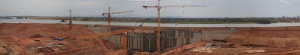 廠房縱向圍堰及右導(dǎo)墻全景圖