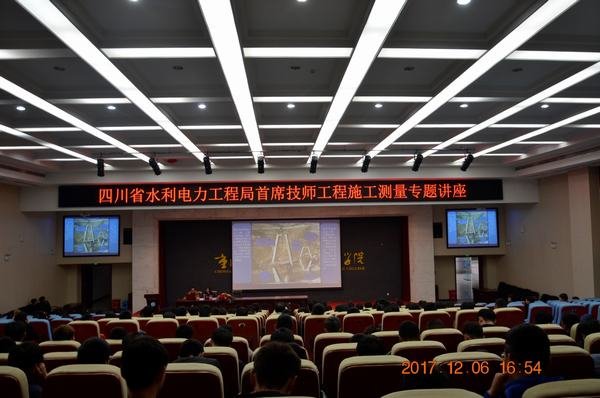 本次交流活動在重慶水職院學術報告廳舉行了三場測量專題講座活動,李春桃主要講述了首席技師工程室成立的背景和意義以及工程測量技術在國家各類建設中的作用,重點宣揚了我局的企業文化;魯興全分別例舉了一個國內工程和國際工程施工實例,主要講解了施工測量技術具體操作規程和測量學理論基礎在施工中的重要性。水利系、建筑系、市政系師生分別參加了專題講座,每場專題活動師生們都興致高昂,專題會結束后雙方都會針對施工測量技術進行熱烈討論,學生們更是對施工現場測量工作充滿好奇和興奮,三場專題活動取得了圓滿成功。