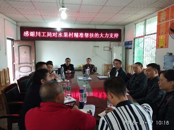 2018年10月17日,在我國(guó)第五個(gè)“扶貧日”之際,工程局黨委副書記、工會(huì)主席代勇率局黨辦主任、勞動(dòng)人事處處長(zhǎng)夏永紅、工會(huì)副主席付麟麗、辦公室副主任周勝一行,赴資陽市安岳縣千佛鄉(xiāng)水果村開展精準(zhǔn)扶貧捐贈(zèng)活動(dòng)。千佛鄉(xiāng)黨委書記呂麟熙、鄉(xiāng)長(zhǎng)張軍、副書記丁飛鷹、人大主席楊剛、副鄉(xiāng)長(zhǎng)羅朝暉,工行安岳支行副行長(zhǎng)唐永宏等相關(guān)負(fù)責(zé)人及水果村“兩委”班子成員、各社社長(zhǎng)、駐村工作隊(duì)隊(duì)員參加了捐贈(zèng)活動(dòng)。