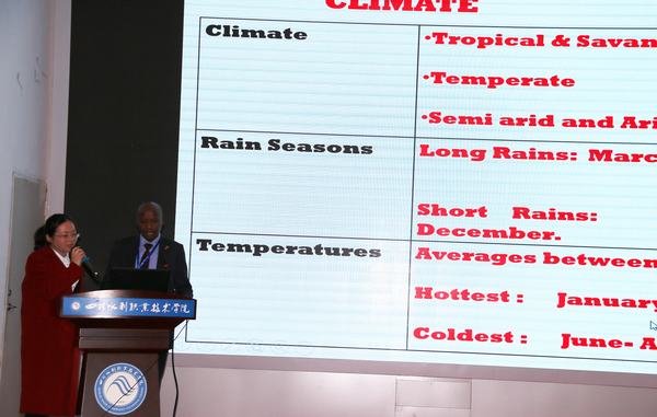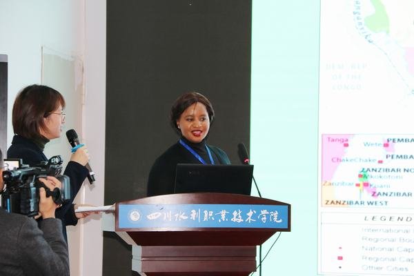 2018年11月20日下午,四川水利服務“一帶一路”國際論壇在四川水利職業技術學院圖書館報告廳隆重舉行。中國水利學會代表,中國水利教育協會會長黃河,水利部發展研究中心黨委委員、副主任吳濃娣,肯尼亞共和國駐華使館教育參贊魯本•阿爾固特先生,坦桑尼亞聯合共和國衛生部高級官員菲利斯特·薇姬莎·馬爾瓦女士,我國前駐外大使崔惠欣,四川大學代表,中國水利水電第十工程局有限公司負責人,四川水利水電勘測設計研究院負責人,四川省送變電建設有限責任公司負責人及相關單位代表出席。四川省水利學會副理事長、秘書長張智涌主持論壇。