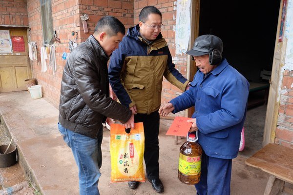 為認真貫徹落實省委、中共資陽市委、水利廳黨組脫貧攻堅工作要求,12月29日,在新年“元旦”即將來臨之際,受局長、黨委書記鄔清富的委托,黨委副書記、工會主席代勇帶隊,率局長助理、四工程處處長茍仕聰,二工程處處長、黨支部書記高代勝,安裝處黨支部書記陳勇,黨辦主任、勞動人事處處長夏永紅,勞動人事處副處長、團委副書記陳東等一行,深入安岳縣鎮(zhèn)子鎮(zhèn)玉峰村開展脫貧攻堅“暖冬行動”。