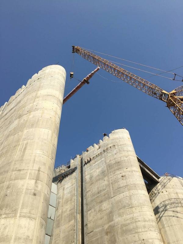 為確保此項自攬任務的優(yōu)質(zhì)高效完成,機械廠全力組織人員在完成前期預埋件的基礎(chǔ)上,于今年9月進場,進行五扇閘門的安裝。在安裝施工過程中,廠安裝一班人對弧形閘門支鉸座安裝、支臂安裝、門葉安裝的技術(shù)問題進行多番探討、嘗試,克服施工條件有限、安裝部位設計缺陷、吊裝半徑受限等困難,在吊裝時把設備操作、吊裝吊索的安裝系數(shù)提到最高,每一步都要保證人員及設備安全,做到萬無一失。面對由11節(jié)門葉組成的閘門,在安裝至第8節(jié)門葉之后,閘門弧度呈后仰狀態(tài),人員在安裝時存在很大的安全風險,廠加大安全投入,定做強度與韌性適合的安全支撐及雙保險作業(yè),確保人員的絕對安全,同時要求安裝人員時刻打起十二分的精神和拿出百分之百的干勁,確保工程項目安裝質(zhì)量,杜絕安全事故發(fā)生。