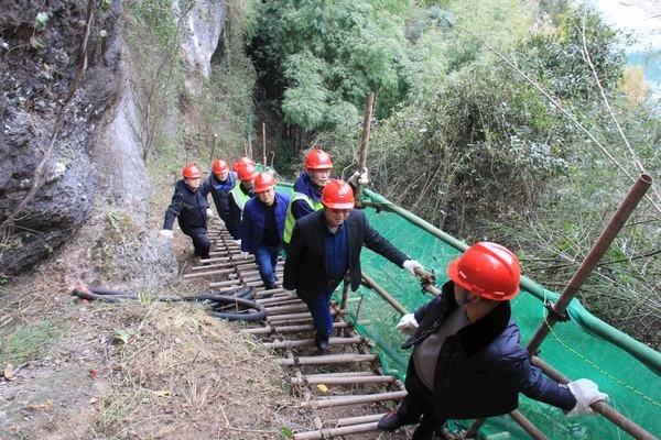 代勇一行在第一分公司經(jīng)理范雪山、第四分公司經(jīng)理羅茂林等陪同下,攀爬崎嶇陡峭的鋼管架設(shè)人行棧道,分別到達距離地面高73m的2#勘探平硐、距離河床高30m的1#勘探平硐以及5#勘探平硐,詳細了解工程現(xiàn)場的施工進展情況和施工難度。代勇首先代表公司黨委對春節(jié)期間仍堅守施工的第一、四分公司全體干部職工表示感謝和慰問,同時指出此行也是春節(jié)前對工地現(xiàn)場進行的安全大檢查,并對存在的安全隱患提出了整改要求。