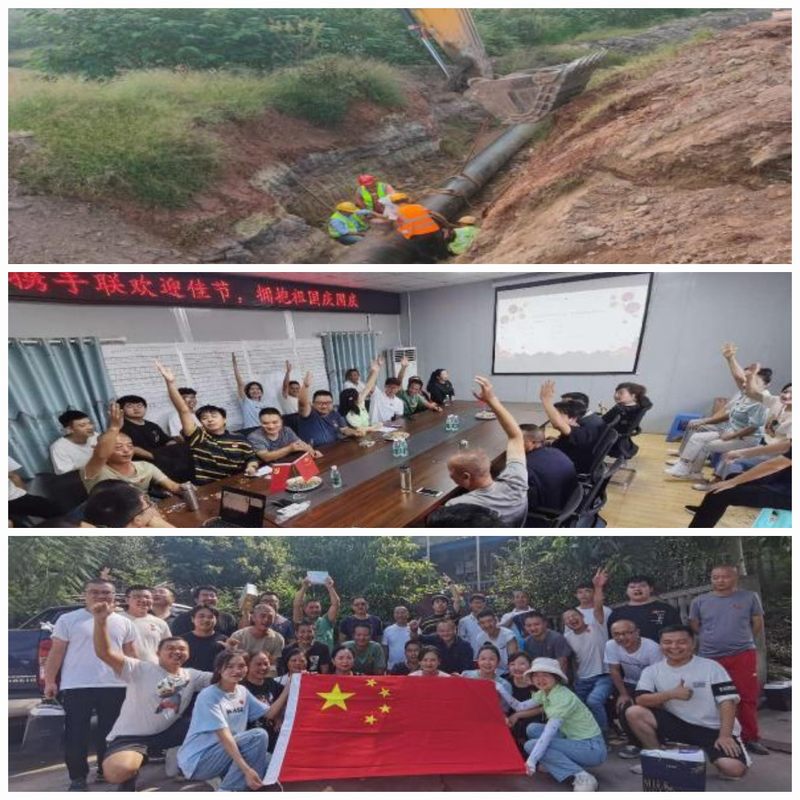 小井溝項(xiàng)目。國慶假期,小井溝項(xiàng)目的全體干部職工按照工程進(jìn)度,合理安排施工作業(yè),進(jìn)行管道安裝、推進(jìn)隧道施工,同時(shí)組織職工開展歡度國慶活動(dòng),既增強(qiáng)了職工們的愛國情懷,也進(jìn)一步激發(fā)了團(tuán)隊(duì)合作的凝聚力。