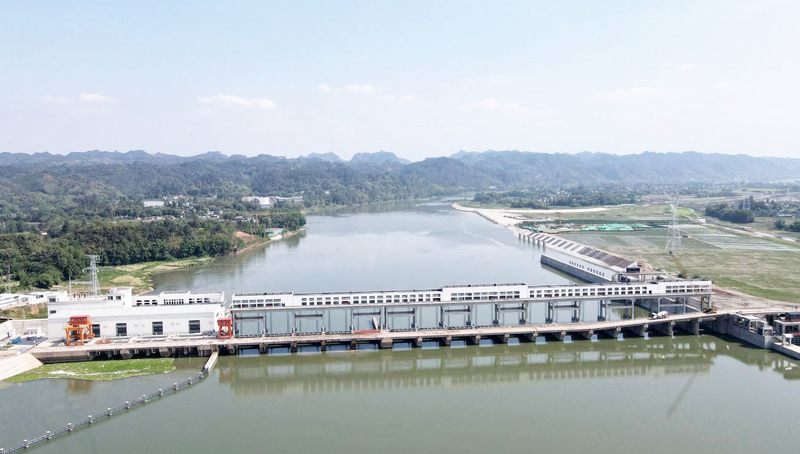 滔滔岷江水奔流不息,岷江虎渡溪航電樞紐橫跨江面,氣勢恢宏。2023年8月17日位于青神縣境內的岷江虎渡溪航電樞紐3號(末臺)機組成功并網發電。在四川水發建設公司參建職工的不斷努力下,歷經三年建設,3臺機組全部投產。項目投產后,可通行2×500t級船舶,設計年均發電量2.47億度,不僅能支撐周邊地區用電需求,同時也為恢復岷江黃金水道和綜合立體交通網絡又向前邁進了一步。