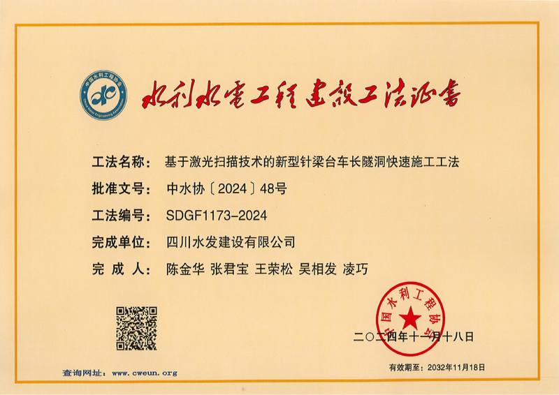 抓科技就是抓發展,謀創新就是謀未來。為貫徹落實習近平總書記來川視察重要指示精神,公司以習近平總書記關于治水的重要論述為指引、以“實現高質量發展要靠科技創新培育新動能”為支撐,在集團領導下不斷探索水利產業科技創新發展路徑。由公司技術中心主持編制的并組織申報的《昔格達地層小斷面薄壁U形明渠施工工法》《基于激光掃描技術的新型針梁臺車長隧洞快速施工工法》《狹窄河谷混凝土高效入倉施工工法》通過中國水利工程協會評審,獲評為2024年度水利行業工法,為公司科技創新再添新成果。接下來,公司將持續推動科技創新成果貫穿工程建設全過程,進一步促進生產科創融合發展,為四川水利高質量發展當好建設排頭兵。