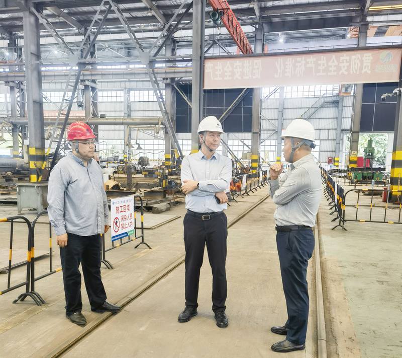 尹曉東一行通過現場看、巡、查、問,全面了解安全生產流程細節,查詢動火作業等相關記錄檔案,進行現場指導交流,并對檢查發現的問題要求整改閉環。