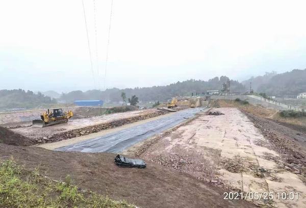 2021年5月24日,通過兩個(gè)月零二十天的緊張施工,五分公司承建的大竹縣土地灘水庫(kù)樞紐及補(bǔ)水工程大壩上游石渣料填筑全面達(dá)到可安全度汛的424.00m高程,順利完成土地灘項(xiàng)目本年第一項(xiàng)階段性施工工作任務(wù)。