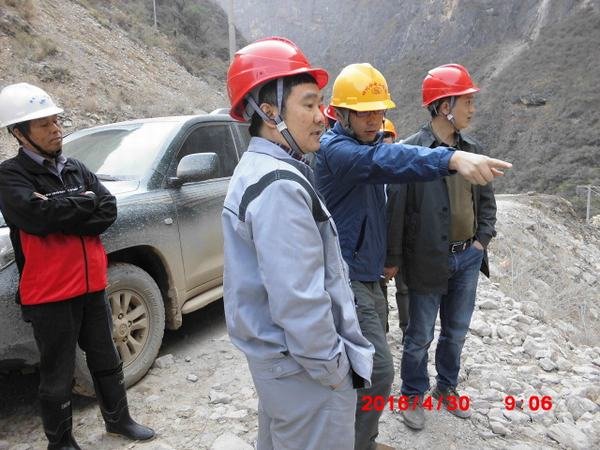2016年4月30日上午,華電集團水洛河公司總經理蒲春雨一行在博瓦項目建管部、設計、監理等相關負責人的陪同下,蒞臨由局三機處承建的博瓦水電站首部樞紐工地現場檢查并指導相關工作。