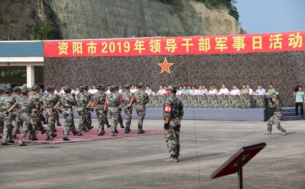 2019年8月1日,資陽市2019年“八•一”軍事日活動(dòng)在四川省救援隊(duì)倉(cāng)庫舉行,市民兵應(yīng)急營(yíng)全體官兵全程參加。資陽市主要領(lǐng)導(dǎo)干部參加了活動(dòng)。