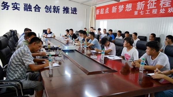 座談會后,第七工程處管理、技術干部分別就該處成立以來的光輝歷程、規章制度、施工管理、合同、質量、安全、內業資料等方面內容向新員工進行了為期2天的培訓。