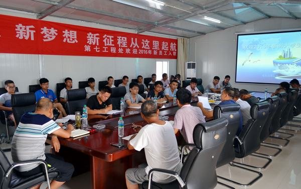 為幫助新進大學生盡快全面了解工程局及第七工程處的施工經營管理模式,融入工程局,及時調整心態,轉換角色,樹立企業的主人翁意識,局第七工程處2016年新進員工座談、培訓會近日在江西龍頭山水電站項目部舉行。局長助理、第七工程處處長鄒世界作動員講話,第七工程處支部書記蔡書江,副處長黃平、副處長程靜,總工程師趙玉成,龍頭山項目部副經理陽恒等參加會議。