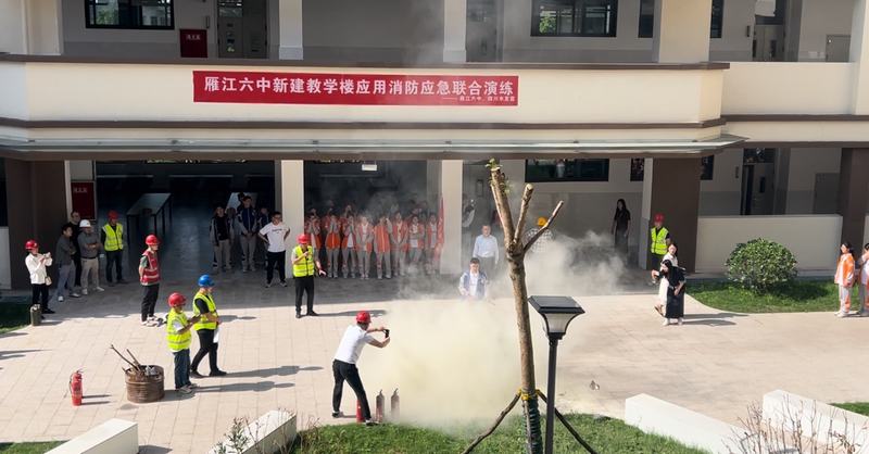 公司資陽雁江六中校舍重建工程項目經理部與校方聯合開展“雁江六中新建教學樓應用消防聯合應急演練”