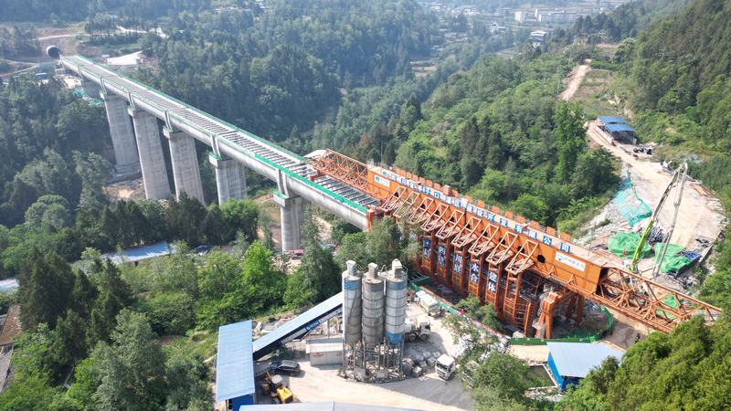 亂石窖渡槽位于閬中市,共設(shè)8跨,最大架空高度為52 米,采用預(yù)應(yīng)力簡(jiǎn)支梁式結(jié)構(gòu)。施工過(guò)程中,公司亭子口項(xiàng)目部創(chuàng)新采用定制化造槽機(jī),專為42米跨簡(jiǎn)支渡槽原位現(xiàn)澆施工設(shè)計(jì),是截止目前亭子口灌區(qū)一期工程渡槽施工中采用的最大造槽機(jī)。