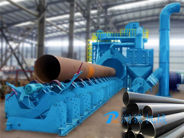 采用液壓馬達驅動,噴丸清理采用啟動馬達驅動。 我公司設計的有大管徑的內(nèi)壁拋丸機和直徑600mm以下的小型鋼管噴丸機等。該設備采用自動拋丸去除表面銹蝕,利用拋丸器拋出的高速
