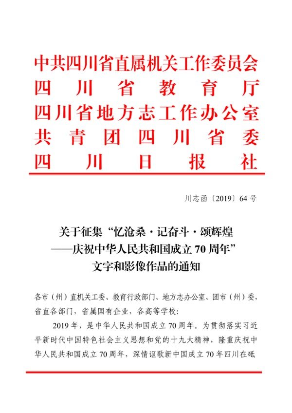 關于征集“憶滄桑 記奮斗 頌輝煌——慶祝中華人民共和國成立70周年”文字和影響作品的通知